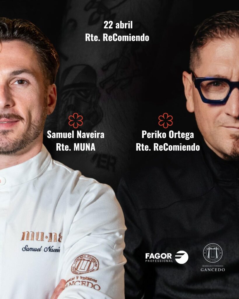 El restaurante ReComiendo* de Córdoba y su chef Periko Ortega recibirán el próximo día 22 de abril al chef Samuel Naveira (Rte. MUNA* – Ponferrada) para celebrar una exclusiva cena donde ambos chefs mostrarán lo mejor de su cocina de territorio, Periko Ortega descubriendo la cocina de la memoria, como abanderado de su tierra, portavoz de las virtudes de los productores andaluces, embajador de las materias primas que se producen en la provincia de Córdoba, y Samuel Naveira con su fusión de la cocina y productos de El Bierzo y la más sofisticada cocina japonesa, todo ello en armonía con los vinos de Bodegas Gancedo. Ambos chefs poseen una Estrella MICHELIN.