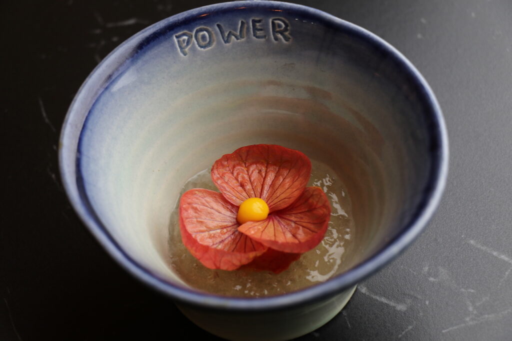 Seguiría Samuel Naveira con un estético plato de influencia japonesa Sunomono de tomate. Sería acompañado del vino Rosado Capricho Val de Paxariñas 2025.