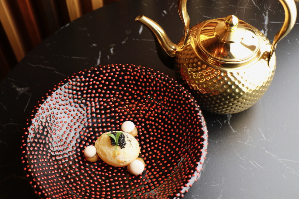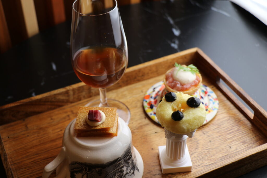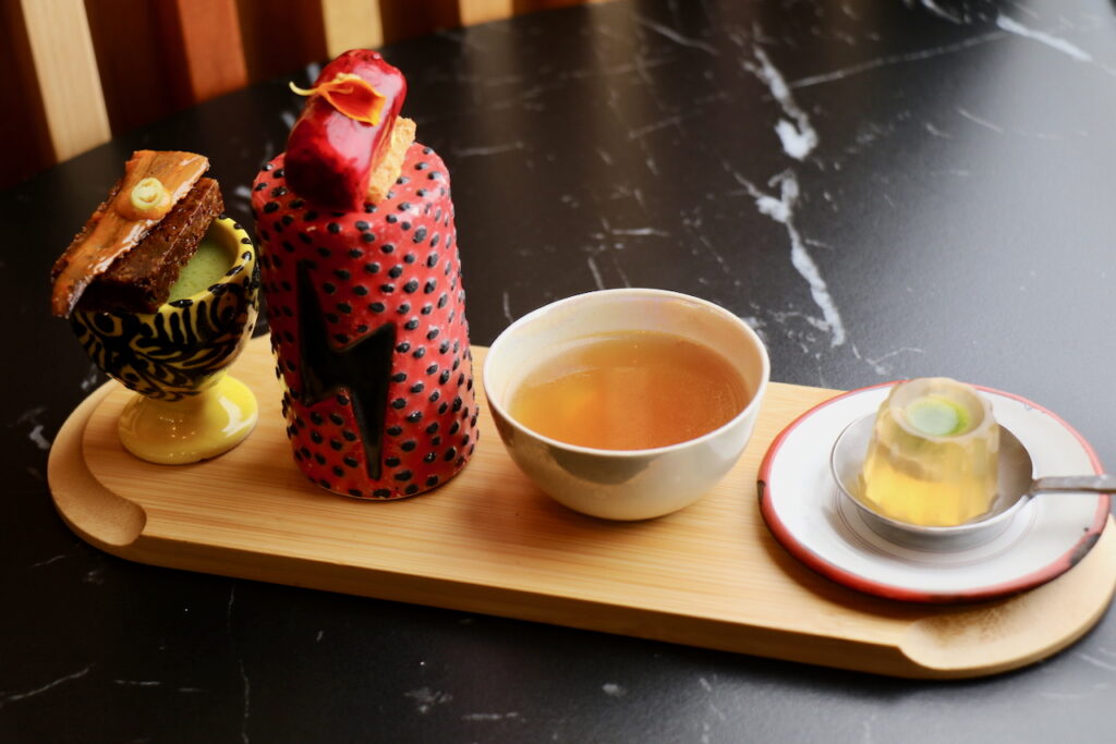 Un viaje a la historia de Córdoba nos cuenta la historia gastronómica actualizada de Hors d’oeuvres del Gran Hotel Suizo Gilda Cordobesa:con Sopa de chupadeos, garrapiñada y anchoa en manteca colorá, Rabo de toro Escarlata y su caldo “Queue de Boeuf”, y Aspic de pringá del cocido.