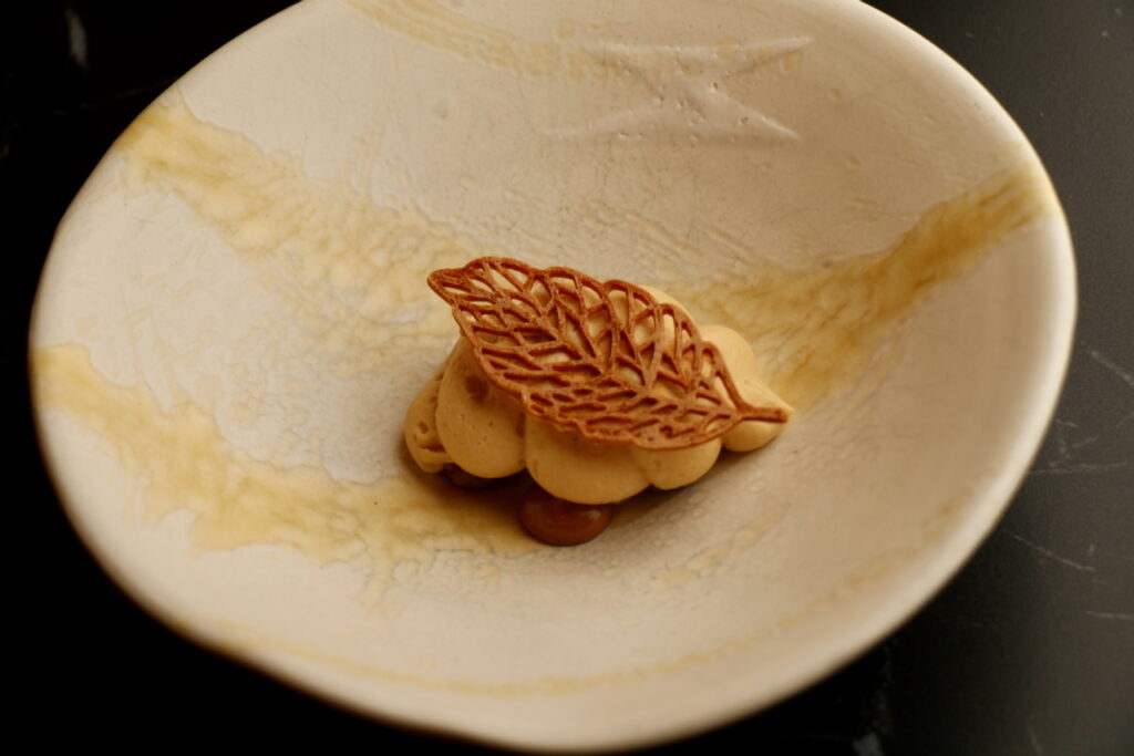 Y la Lubina Aquanaria Dry Aged con ajoblanco de turron toffee de ajos y uvas, aportaba una sorprendente visión de la maduración de los pescados con la técnica de Periko Ortega que cerraba está entrada del menú con todos los bocados servidos en armonía con el vino Capricho Val de Paxariñas 2025.